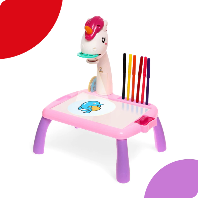 La Mesa Didáctica Proyector Bebesit es una propuesta creativa y entretenida para acompañar a los/as niños/as en sus primeros pasos artísticos. Diseñada para dibujar, proyectar, colorear y estimular la imaginación con sonidos, luces y colores.