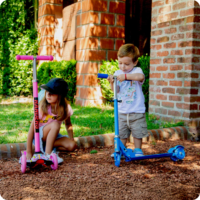El Scooter Randers es ideal para niños que están aprendiendo a manejar, ya que su diseño de tres ruedas y freno trasero lo hace seguro y fácil de usar. Incluye luces en las ruedas, estructura liviana y sistema plegable para guardado cómodo.