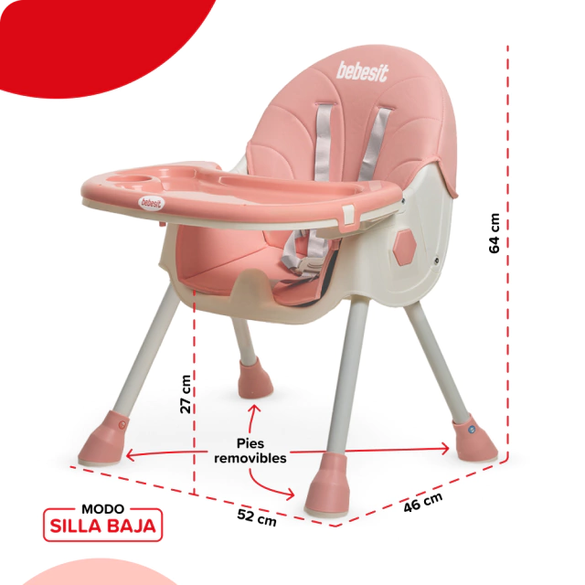 La Silla de Comer 4 en 1 Bebesit es una solución práctica y versátil para acompañar al bebé en cada etapa. Su estructura multifunción se adapta como silla alta, baja, mecedora o silla de transporte, brindando comodidad, seguridad y practicidad en todo momento.