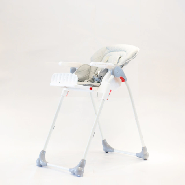 Estructura metálica y plástica de alta resistencia. Tapizado acolchado y lavable. Limpiar la bandeja con un paño húmedo.